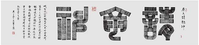 刘旦华工行、草、隶,精于篆,独创“黑篆体”,其中刘旦华的作品就是以“龙舞”套路等为主题用“黑篆体”创作为主的作品。2021年出版《雕龙世家祖孙三代翰墨作品集》。