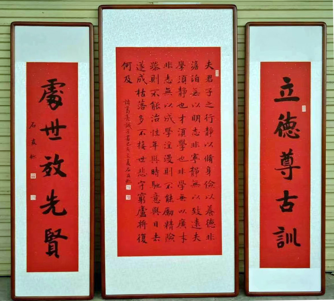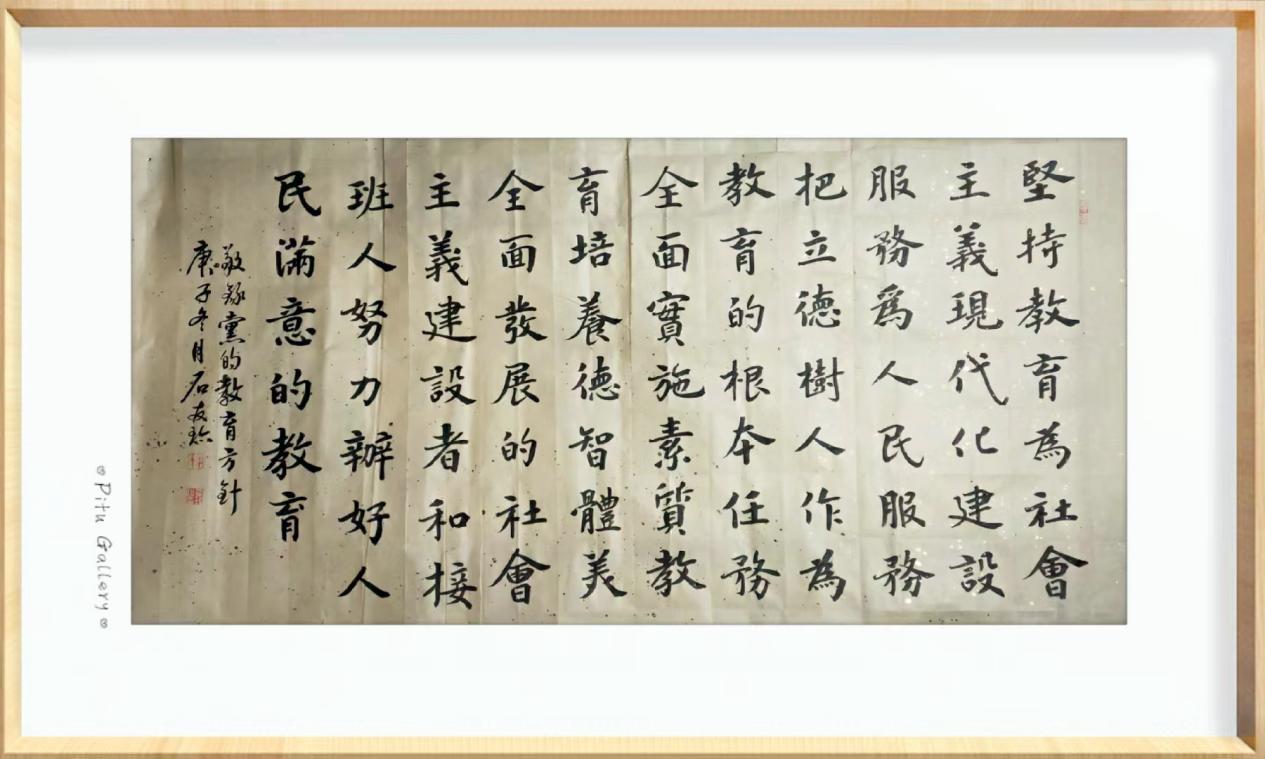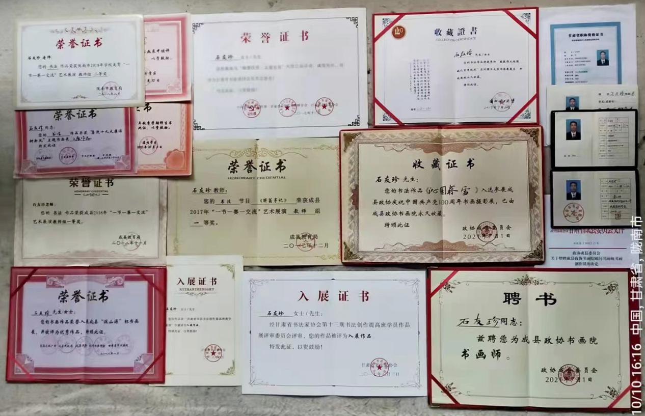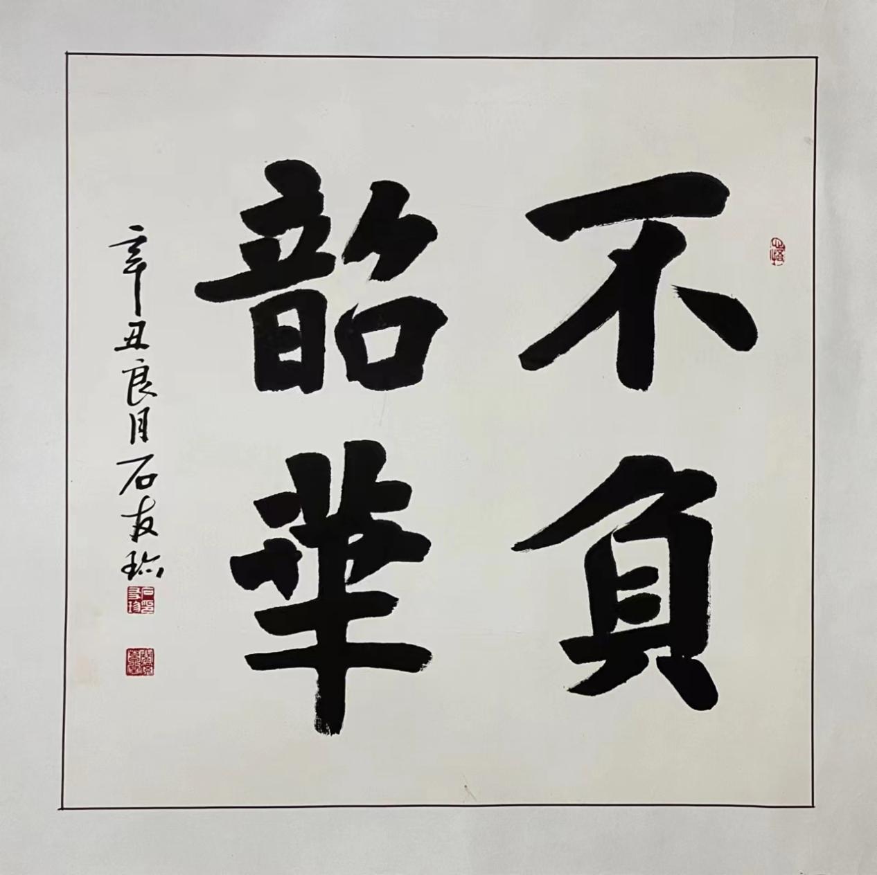 深师碑帖,笃传书道。在书法教学上,他注重用笔墨娴熟的技法,向学生示范用笔千古不易的书道,倡导法而不拘的创作精神,不让人成为笔墨的奴隶,让人成为艺术的真正主人。在他的示范和教育之下,后辈悟书道者层出不穷,为书法文化的传承与弘扬做出了不遗余力的努力。当一位书法家拥有了书法文化弘扬的主体行动之后,才会像石友珍先生这样,拥有令人敬仰的书道功德。笔墨一挥,叩击山河;大写春秋,书道相传!