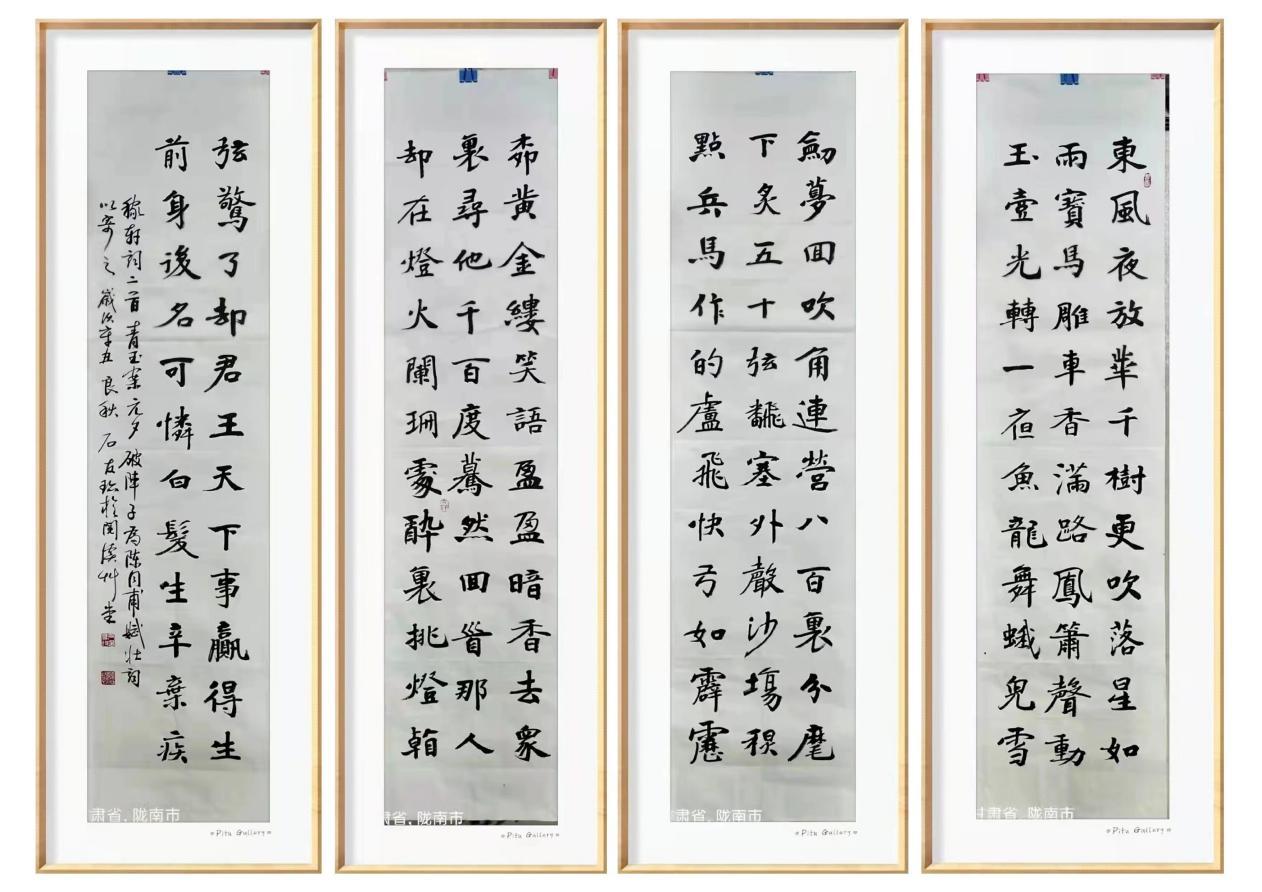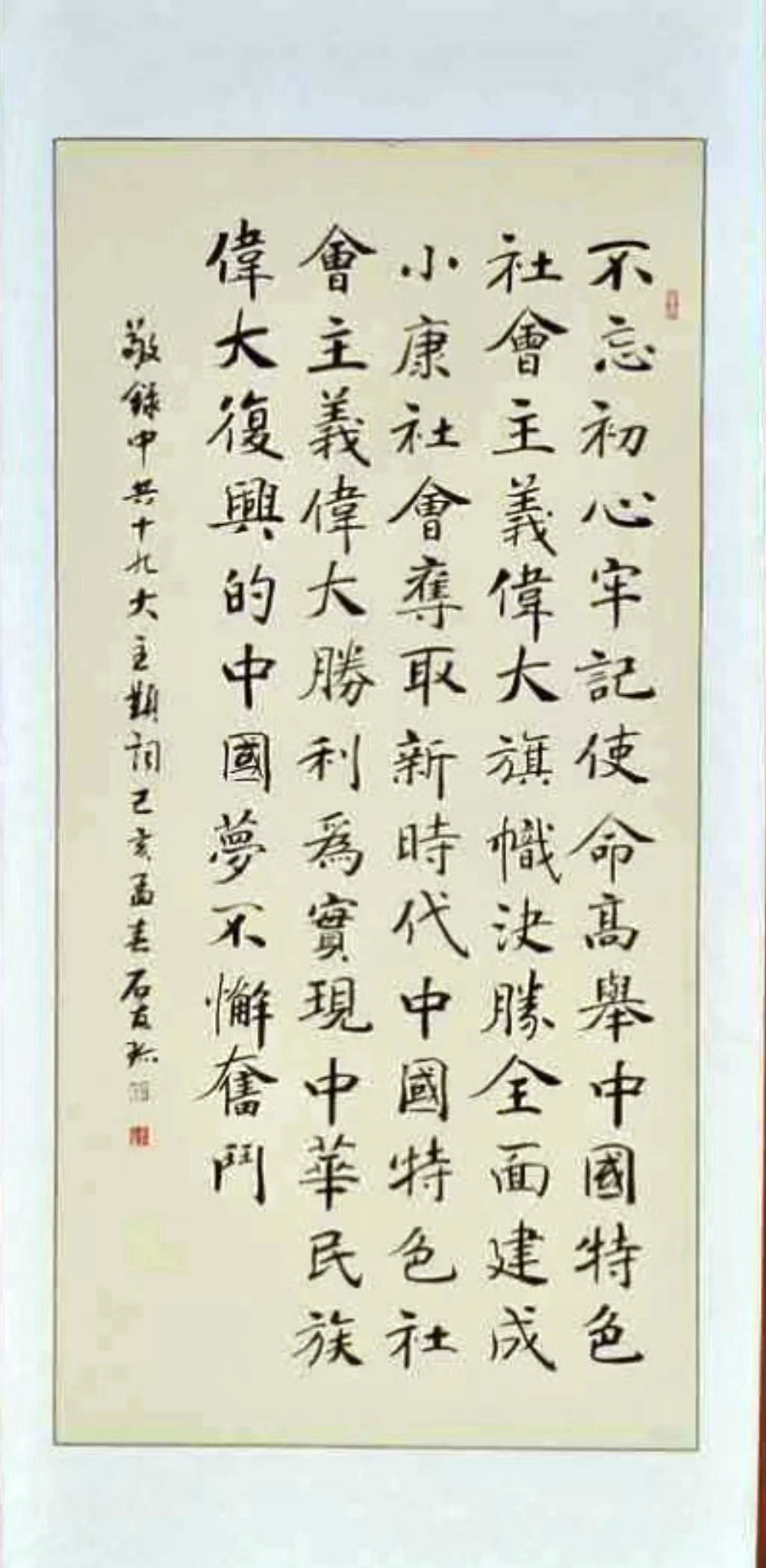 书法作品在省内外各和大展中入展或获奖,楷书条幅十九大主题词被兰州理工大学永久收藏。