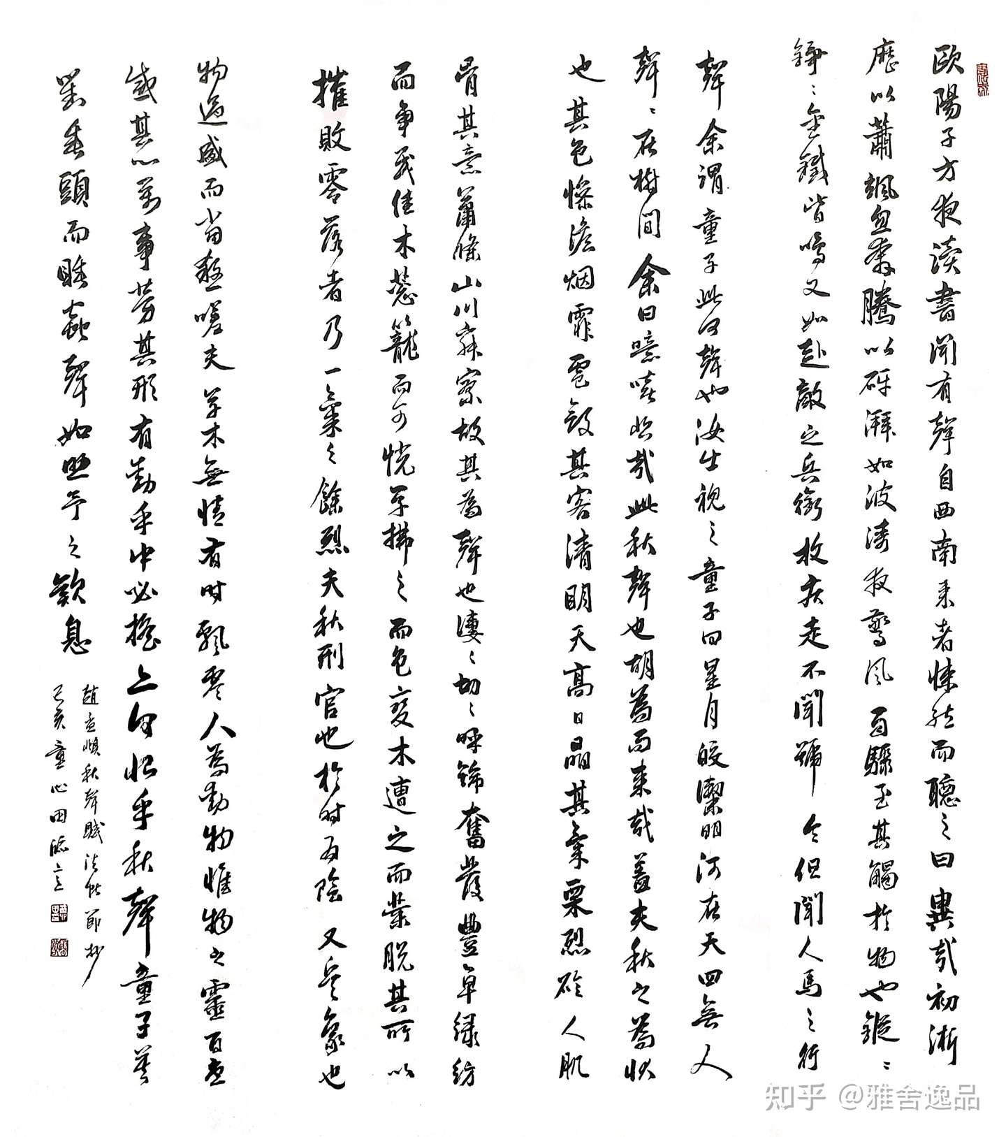 首先,在章法布局上:规范、匀称、疏朗、计白当黑;其次,在结体上:内紧外放、大小错落、奇正相倚;第三,在笔法上,起笔重、收笔稳、点如坠石、横若卧龙、竖似枯藤、撇比豹尾、勾像长戟;第四,在墨法上,从湿到枯,顺其自然,重墨为主,不燥不火。