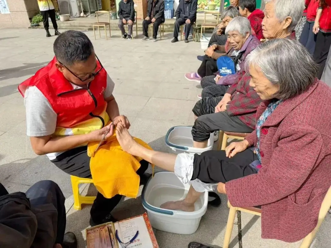 活动现场,莱茵湖足艺坊的技师为老年人提供免费修脚服务,针对足部健康问题进行专业护理;社区便民理发店志愿者则为老人修剪发型,以贴心服务提升生活幸福感。此外,童画视界美术中心的青年志愿者们为社区残疾老年人送上手工月饼和面粉等中秋礼物,传递节日温情。