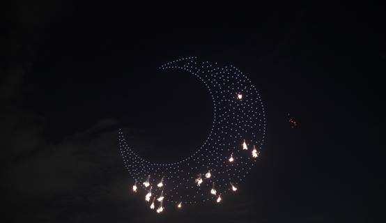 科技致敬家国!隐贤山庄无人机秀解锁国庆夜空新玩法