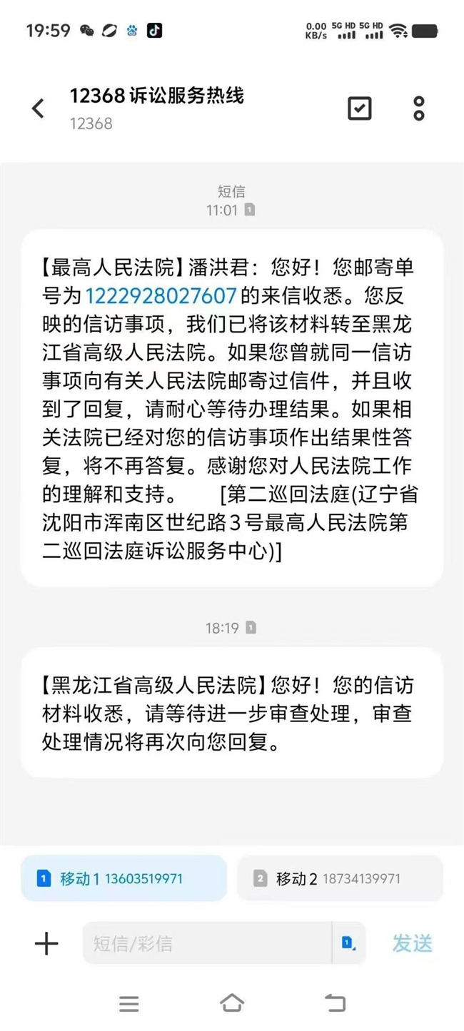 牡丹江市中院怕露丑,稳匿监审卷。海林市委出面都沒查到。却查到牡丹江市中院档案室案号在,内容却被调了包?!追查了三十多年,今年最高人民法院院长张军同志收到潘洪君特快专递,层层转办,终审法院再次支找牡丹江市中院,仍然没有合理的答复!!!