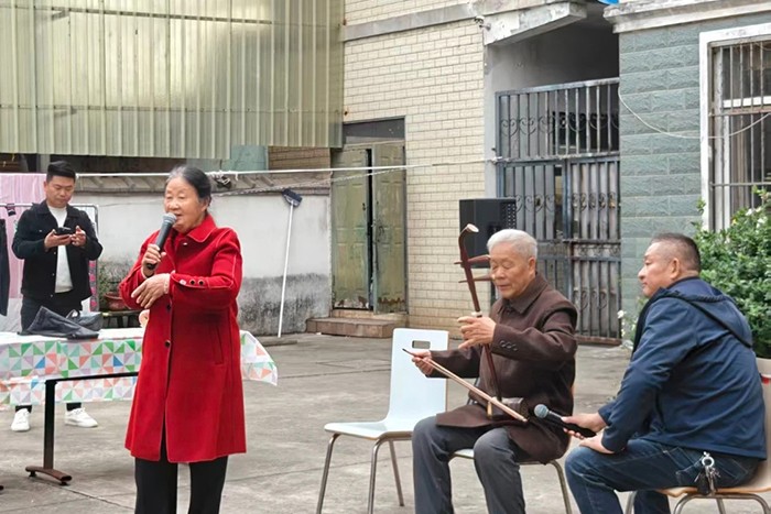 理事迟晶主持的文艺表演与互动环节,又将现场气氛推向欢乐的高潮。嘉和安养院的朱常来老人率先登场,以激昂语调朗诵《七律・长征》《满江红 贺郭沫若》,字字铿锵间尽是豪情,台下掌声如潮,久久不息;吴夕荣老人一曲《大海航行靠舵手》响起,熟悉的旋律瞬间勾起岁月记忆,老人们不自觉跟着轻和,歌声里满是往昔的温暖。“中国好人”刘雪华夫妇二胡伴奏《愿亲人养好伤》,悠扬曲调似羽毛拂过心尖,悄悄触动在场每个人的柔软;副会长韩峰唱起《孝敬爹和妈》《阿爸阿妈》,深情的歌声里满是对长辈的眷恋,老人们眼中泛起幸福的泪光,那光芒里,有感动,更有被理解的熨帖。志愿者们分享的一则则敬老故事,如同细碎的暖光,让整个安养院都浸在融融暖意里。