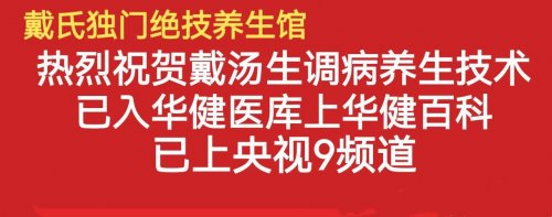 要想了解更多戴汤生独门绝技调病养生到百度搜索戴汤生三个字。