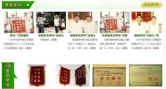 我门诊中医肿瘤专家研制的中药扶正抗癌排毒疗法“消瘤法”(中药扶正散结抗癌合剂,祛癌丸内服,外贴瘤痛康贴),药力直达癌瘤病灶处快速杀灭癌细胞,快速止痛,消积水,化散肿瘤,消肿,活血化瘀,软化肿瘤之功效。疗效确切,无毒副作用,康复后不易复发。对正在化疗或放疗的癌症患者达到减毒增效的治疗效果,还能缓解化疗、放疗的毒副作用(恶心、呕吐、食欲减退、发热、脱发、白细胞减少等)。一般病情用药七到十天,恶心呕吐缓解,食欲增加,发热下降。用药一个疗程病人精神好转,自觉症状(吞咽困难,咳嗽、胸闷、呼吸困难及紫绀、发烧、消瘦等)得到缓解,脱发控制或长有新发,提高白细胞计数,提高机体免疫功能,增强患者的抗癌能力。对手术后癌症患者,应用我门诊肿瘤专家研制的抗癌系列药物,预防复发、扩散和再转移。