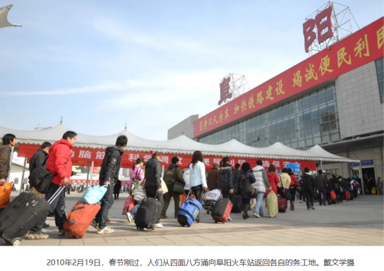 每年春运,是阜阳外出务工的集中时段,也是农民工“寻梦新生活”的开始。他用镜头记录下农民工的旅途过程,与他们共同分享辛苦与收获。自2000年起,每年他都主动投入春运采访。多次随阜阳市政府安排的“接您回家”专列火车,前往“长三角”接农民工回家;又多次前往宁波等地,与农民工兄弟同吃、同住、同劳动,感受他们的酸甜苦辣。如今,他仍保留着他们的联系方式,不时相互问候和祝愿。“我对春运有着特殊感情,因为他们就是我,我就是他们。我愿意为他们付出,乐于服务社会。”他动情地说。