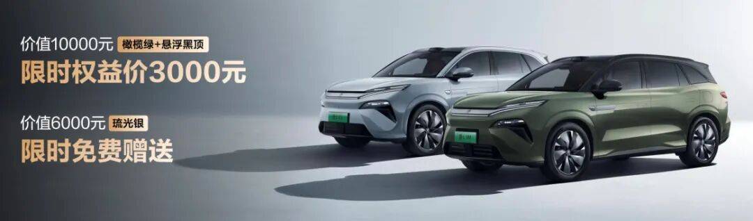 用户在12月31日前购车,可享价值4.5万元的7大限时购车礼遇。其中包含超级置换补贴1.5万元;价值10000元的橄榄绿+悬浮黑顶,限时权益价3000元;价值6000元的琉光银,限时免费赠送;以及至高贴息10000元尊享金融礼、至高13000元尊享贵宾礼、尊享智联礼、尊享无忧礼、延保服务。