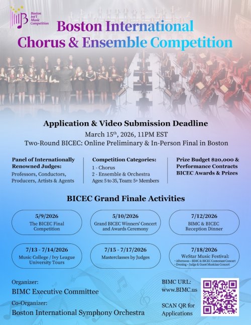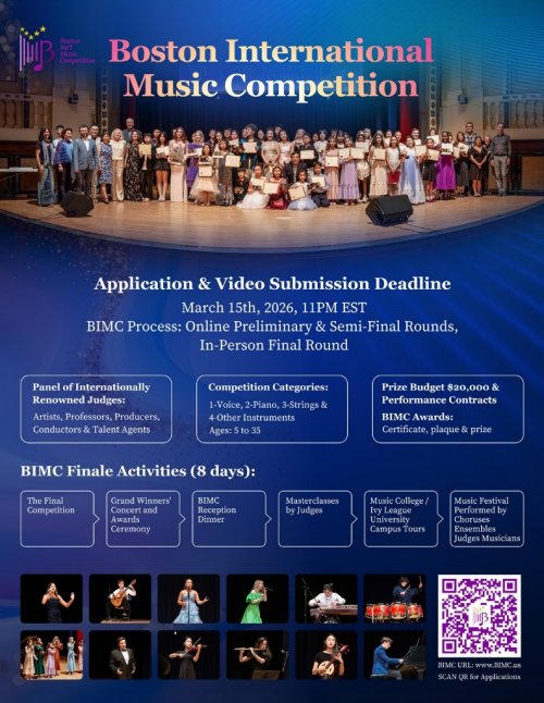 2026波士顿国际音乐大赛正式开赛——四大赛事联袂呈现,全球音乐才俊齐聚波士顿