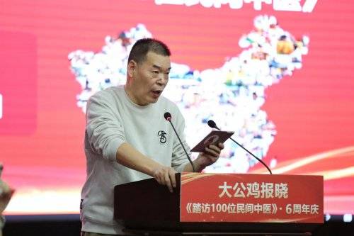 《大公鸡报晓》项目创始人杨东在庆典上分享了六年来的心路历程。2017年,杨东与妻子刘稳,这对心怀传统医学传承使命的夫妻,开启了一项前所未有的民间中医探访之旅。他们自费购置拍摄设备,驾车穿梭于城乡之间,寻找那些散落民间的中医高手。