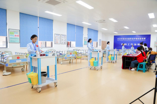 12月20日,竞赛正式拉开帷幕。作为专项赛,本次竞赛设成人组、学生组,以养老护理员职业技能为核心,结合行业发展需求设置家庭照护工作场景、社区工作场景、机构工作场景,考核内容涵盖生活照护、基础照护、康复服务、心理支持、安全照护、感染防护等关键模块,全面检验选手专业能力与职业素养。赛场上,中外选手耐心细致地完成各项操作,用专业服务诠释 “尊老敬老爱老” 理念,赢得评委一致认可。