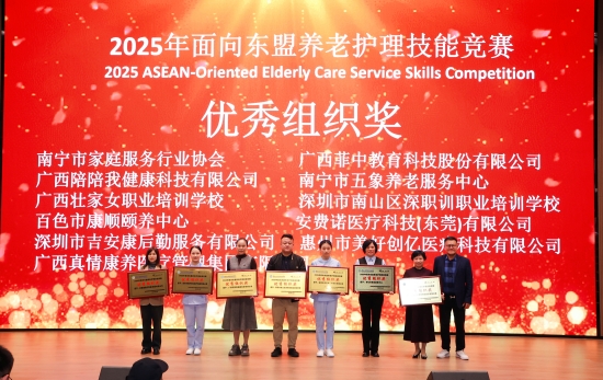 12月19日至21日,在广西壮族自治区总工会、广西壮族自治区民政厅、广西壮族自治区人力资源和社会保障厅的指导下,由广西工业职业技术学院与广西菲到万家健康产业集团有限公司共同主办、林忠伟(广西)产教科咨政联盟协办的《2025年面向东盟养老护理技能竞赛暨AI科技赋能智慧康养高质量发展研讨会》,在广西工业职业技术学院武鸣校区顺利举办。来自国内外27个参赛单位共30支队伍、75 名选手同台竞技,展现养老护理专业风采,共话智慧康养产业发展未来。