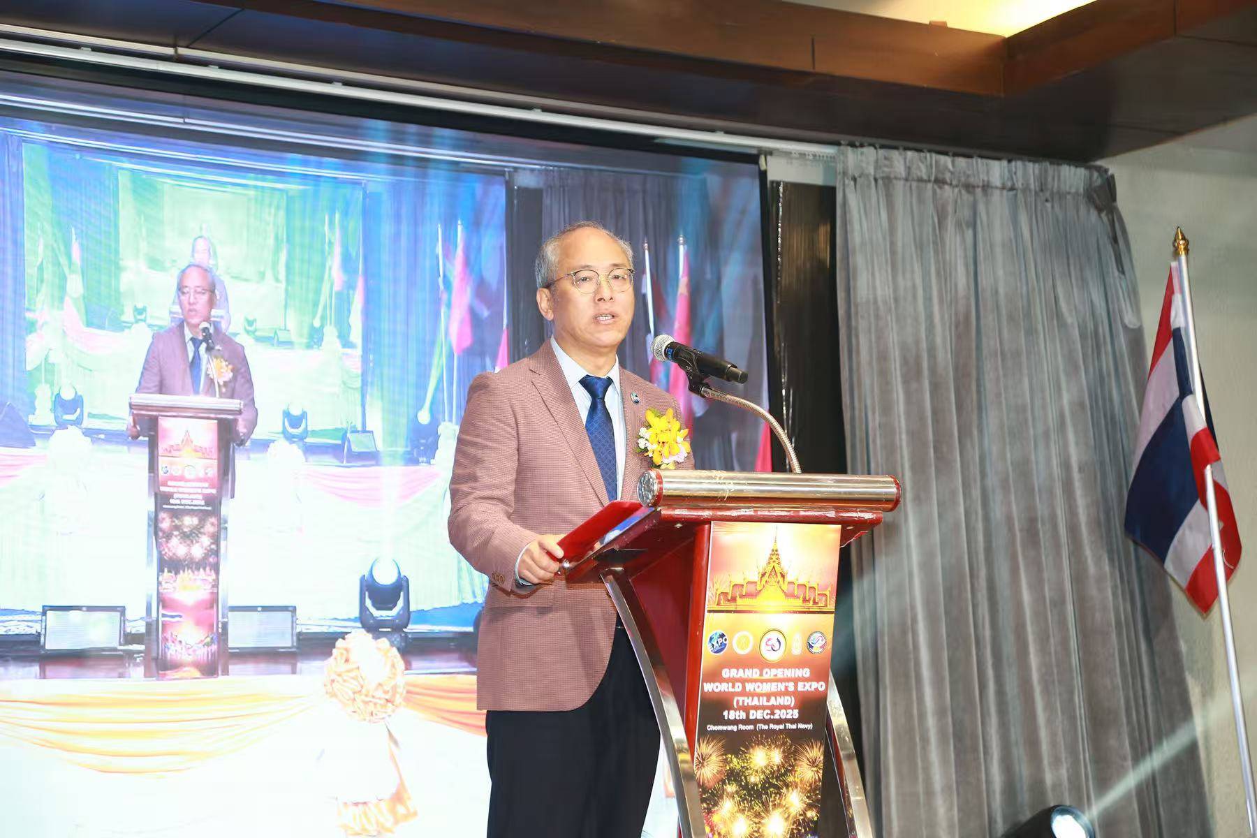 王刚博士在致辞中表示,中泰两国友好传承千年,“中泰一家亲”历久弥新。世界女博会落地泰国,既是中泰建交50周年人文交流的璀璨亮点,更是两国携手践行联合国2030年可持续发展议程的生动实践。未来,世博国际联盟将全力链接全球资源,为中泰女性在数字经济、绿色产业、文化创意等领域的合作铺路搭桥,续写“共享和平、共同繁荣的下一个50年”的崭新篇章。
