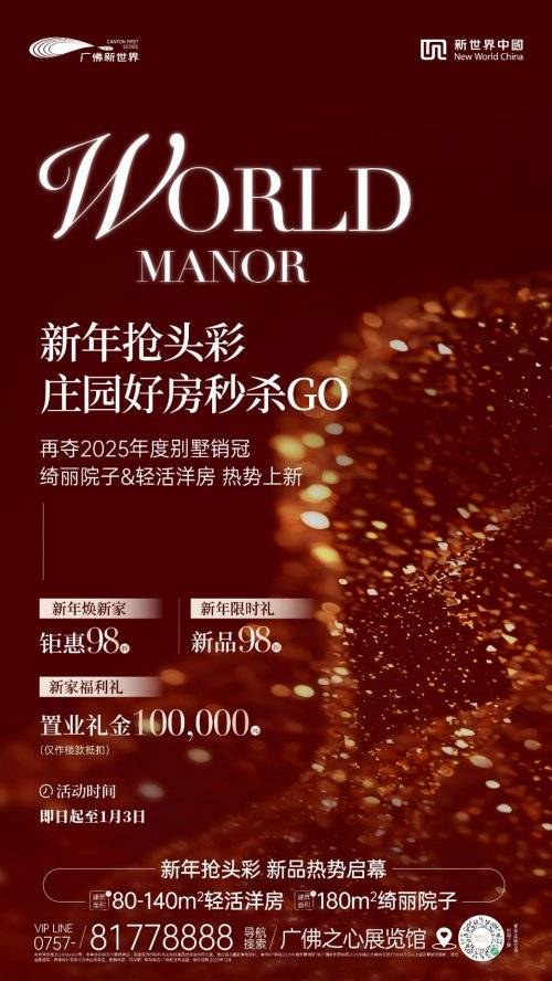 生活热闹升腾,广佛新世界绮丽院子火爆销售中,330万起买两层享有天有地五层院子,与家人共赴团圆美好,抒写丰盛新生活。元旦期间,置业即享新年焕新家钜惠98折,新家置业礼金100,000元等多种福利,机会不容错过!