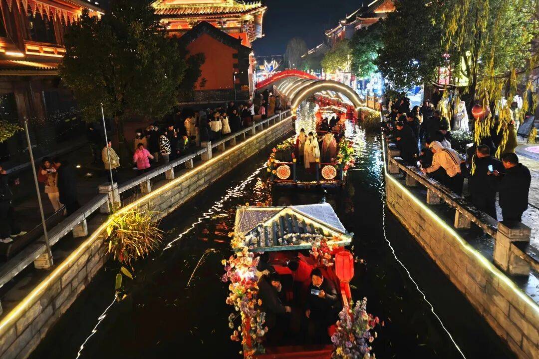 除此之外,景区内的常态演出也惊喜不断,古装快闪、明宫月夜、大明风华、英台小姐姐花船演艺等特色节目贯穿午后至夜幕,在景区各处轮番登场,让游客转角就能邂逅惊喜。