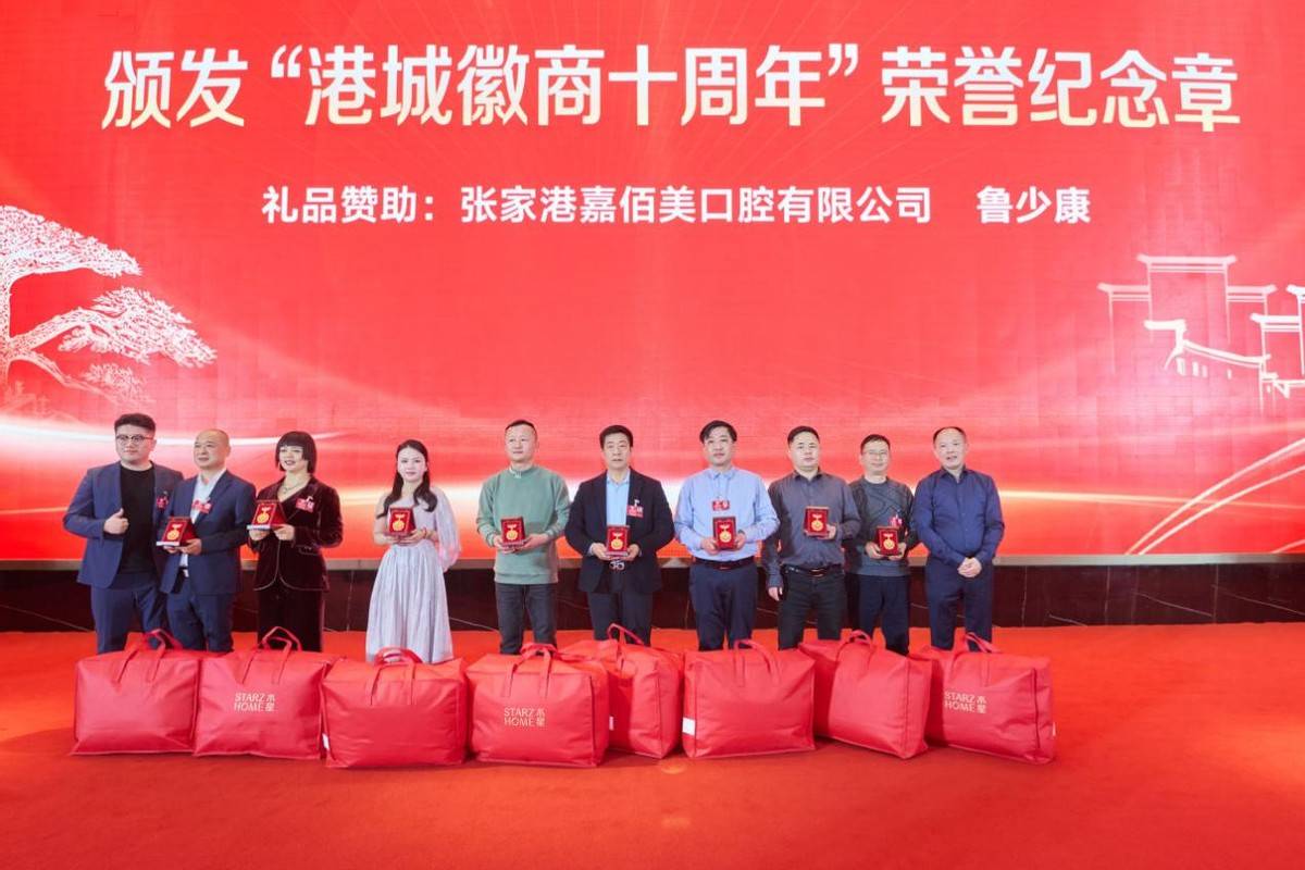 年会特别设置温馨环节,向陪伴商会成长十周年的会员颁授“港城徽商十周年”荣誉纪念章,感谢他们长期的奉献与坚守。
