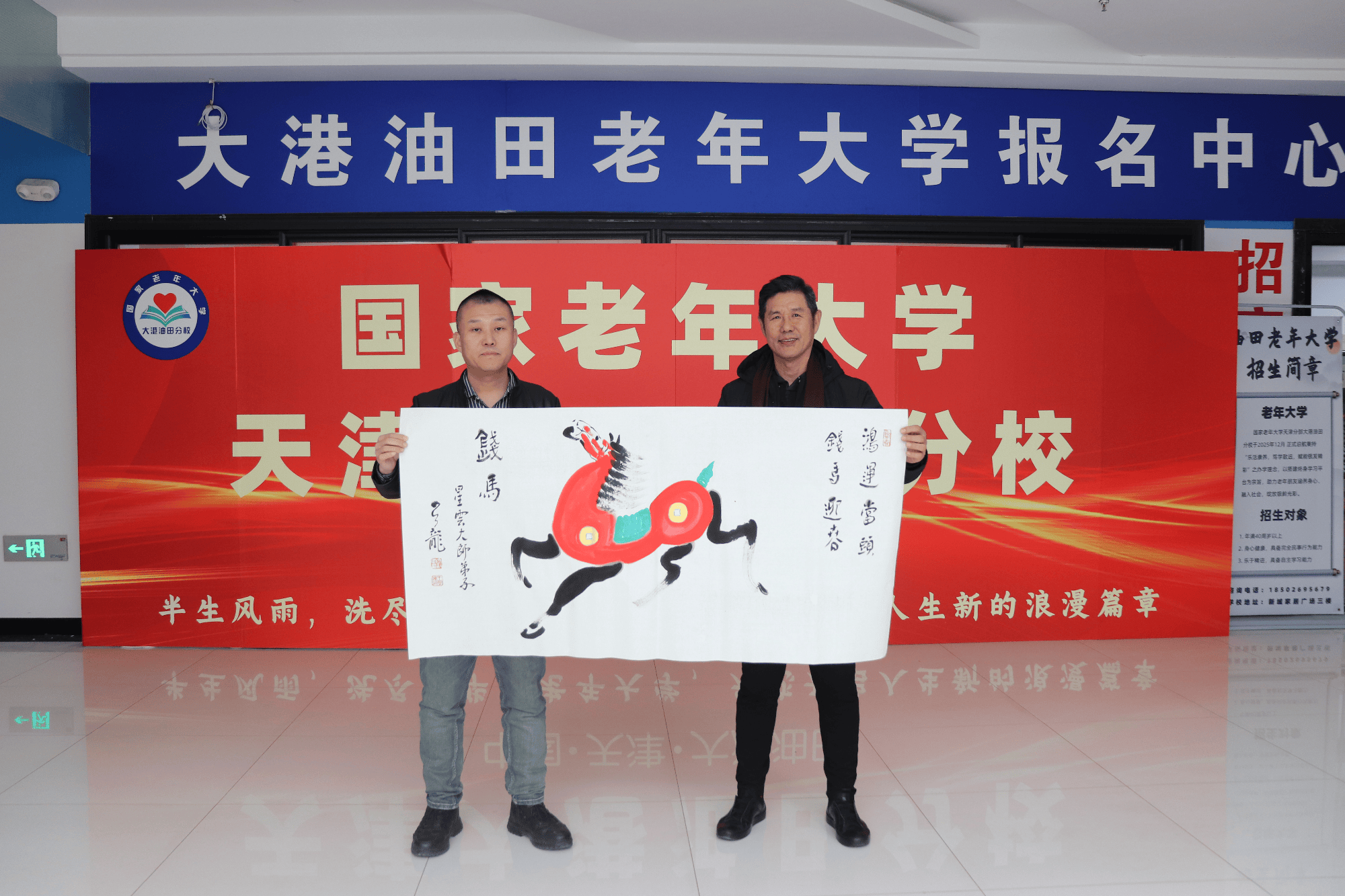 活动现场名家荟萃、嘉宾云集,文化界与跨界领域的多位重量级人物齐聚一堂。中国起鑫教育集团董事长、国家老年大学天津分部大港油田分校理事长王鑫携校区团队天津分部大港油田分校常务校长王利红、国家老年大学天津分部大港油田分校后勤主任曹明等团队成员特邀唐山文化名人、大型晚会总导演中企艺联书画院,河北分院名誉会长赵立君,李大钊书画院院长、书画家马志伟,李大钊书画院副院长、中国书画协会理事、河北省书协会员徐建富,中企艺联画院河北分院院长、中国美协书协双会员孟天增,中国(香港)云龙宽笔画社、新加坡(南洋)牛百万分社创始人、中华生肖艺术非遗传承人云龙树辉,华夏名人联谊会顾问、原武警部队廉继峰大校、马拉松达人、牙科医生南希广等嘉宾出席,与行业协会领导、媒体代表共同见证这场兼具传统韵味与现代活力的文化传承盛事。