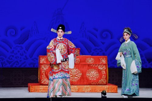 路洁为习得该剧精髓,自2020年起,每周专程赴天津向京剧名家王艳学习了三年。王艳老师对气口、劲头、身段等细节的严苛要求,让路洁精准把握了谢瑶环的人物特质。作为生旦两挑的剧目,路洁在剧中既需展现旦行的端庄柔美,又要诠释小生的轩昂英气。开场闷帘一声“来了”便能收获碰头彩,身着巡按红蟒官服的亮相英气勃发,完美诠释了正义化身的形象。“头公堂”一折中,堂审武宏的大段念白刚劲有力、张弛有度,将谢瑶环不畏权奸的凛然正气展现得淋漓尽致;“花园”一场则尽显女儿家的娇羞柔情,“谢瑶环深宫九年整” 的南梆子唱腔婉转旖旎,配合遮面团扇的细腻身段与小圆场走位,将与袁行健的情意绵绵刻画得美不胜收,与小生演员刘明哲的默契配合赢得满堂喝彩。
