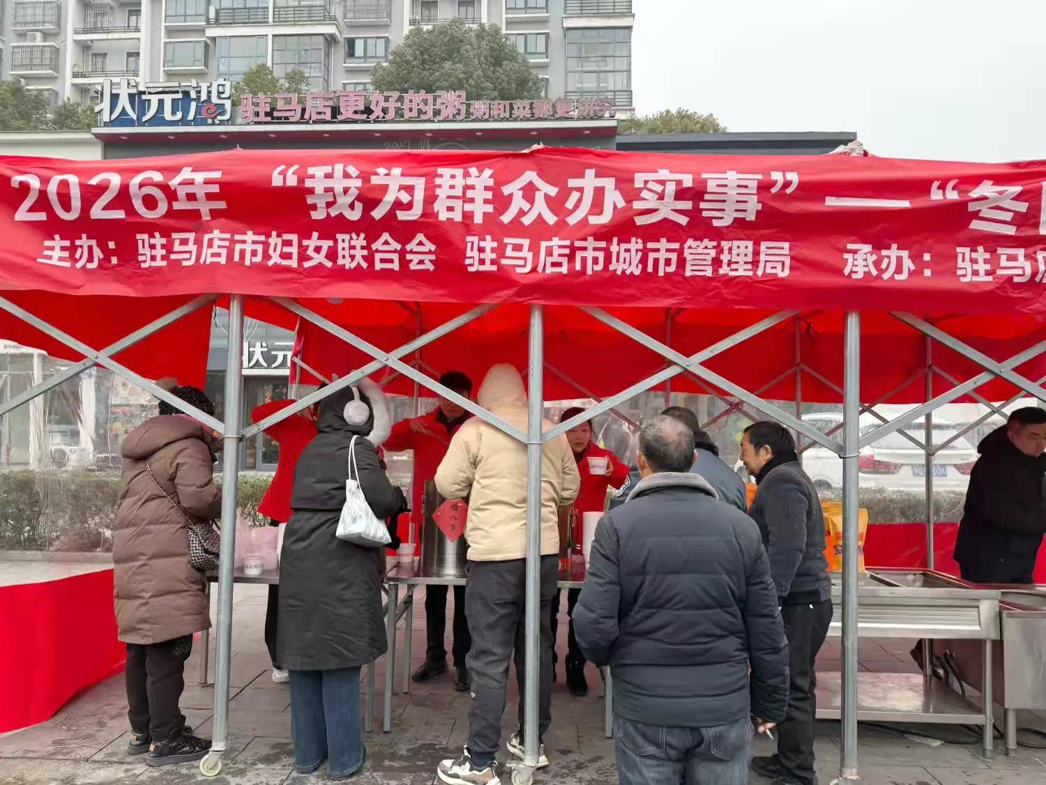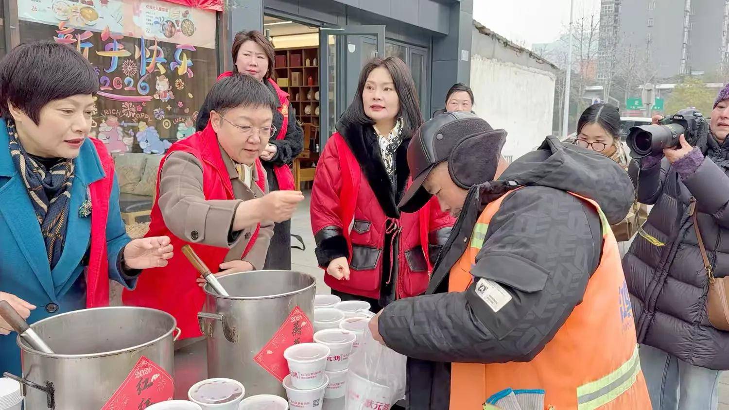 腊八粥暖,公益情长。1月26日腊八节当天上午,由驻马店市妇女联合会、驻马店市城市管理局主办,驻马店市女企协会员单位状元鸿餐饮管理有限公司承办的2026年“我为群众办实事”——“冬日暖阳”巾帼志愿关爱活动在状元鸿粥置地店温情开展。活动为坚守一线的环卫工人送上腊八粥和热包子,传递节日的祝福和冬日的关怀,并对他们的辛勤付出表示敬意和感谢。