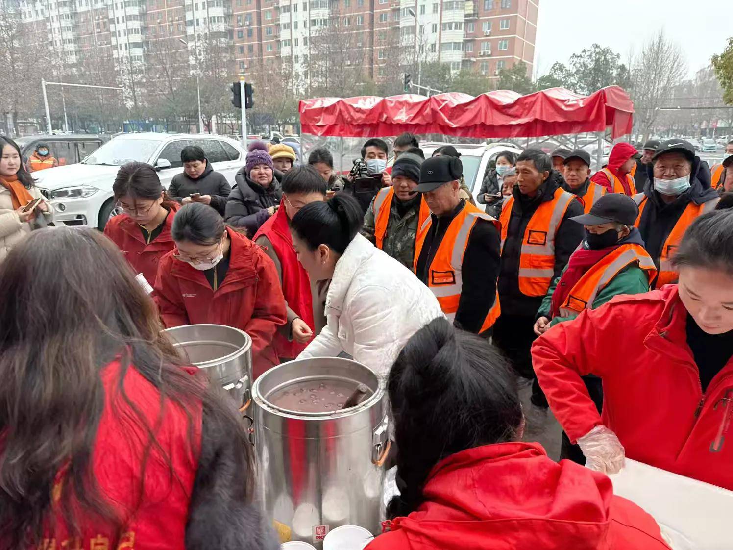 环卫工是城市的美容师,他们起早贪黑,用勤劳的双手和辛勤的付出,让道路更干净、环境更优美、城市更宜居,是值得我们每个人关爱和敬重的最美劳动者。活动现场,驻马店市妇联二级调研员张宏动情地说道:“今天送出来的这碗腊八粥,包含着党和政府对我们人民群众的关爱、包含着社会各界对我们环卫工人的敬意,还包含着志愿者奉献担当的精神,更包含着状元鸿全体员工的爱。所以说这是一碗暖心粥、爱心粥,希望你们喝热乎乎的粥,身体更有劲儿,干起活来更有力量。”