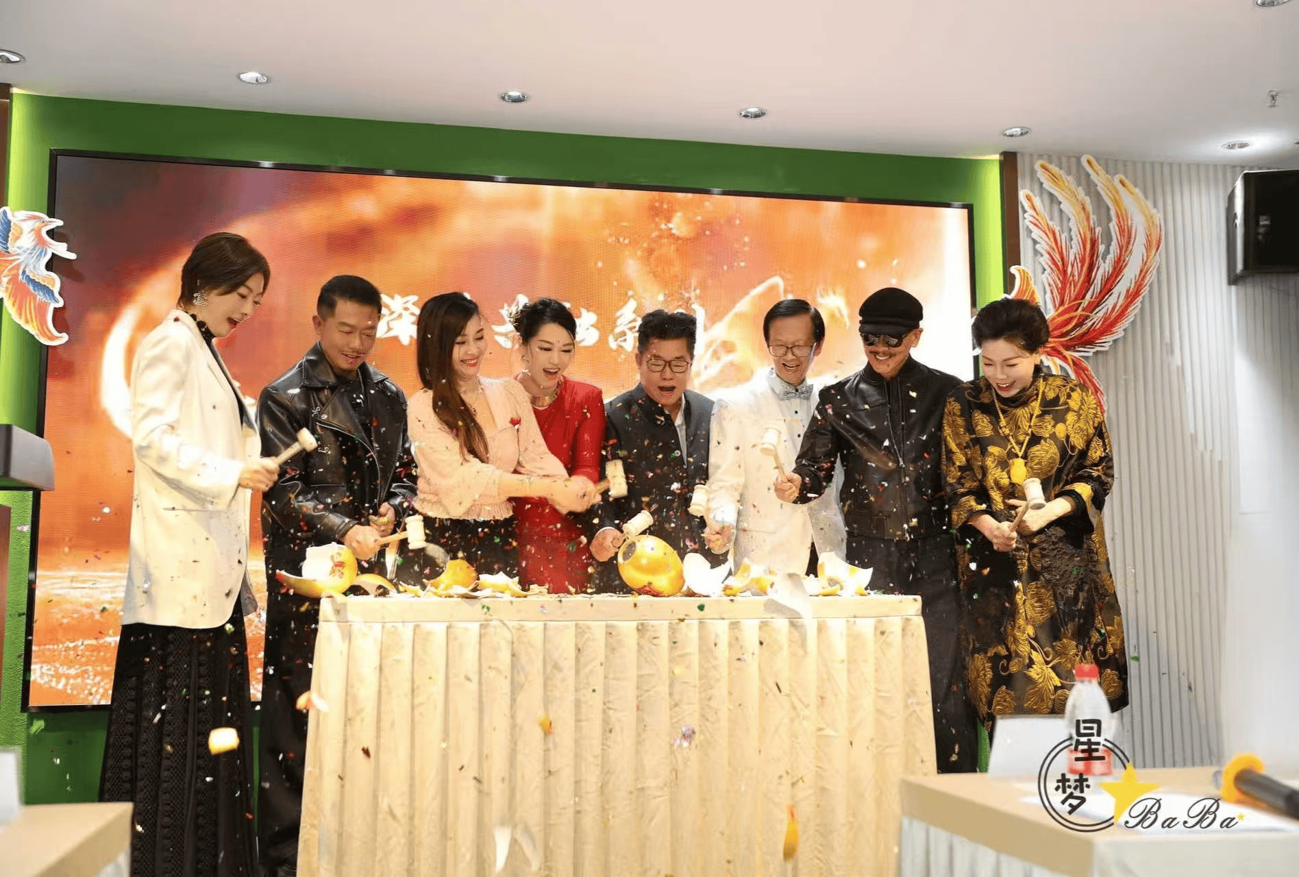 盛典最受瞩目的砸金旦成立仪式环节,一众重磅嘉宾依次登台,共同为《东方凤凰》IP启幕,嘉宾阵容如下: 香港资深传媒人、明星经纪人及演唱会出品人郑锦辉先生、中联财富(深圳)投资集团董事局主席许钜池先生、深圳市奥莱海拍优选贸易有限公司创始人朴卜女士、世界妇女发展联盟会长毛钰焕女士、中国香港演员杜燕歌先生、中国台湾音乐人天宥先生、东方凤凰组合‐-中国香港演员、棉兰老岛皇室公主陈昭昭女士及中国香港艺人及歌手、中泰混血女神陈安麒女士。