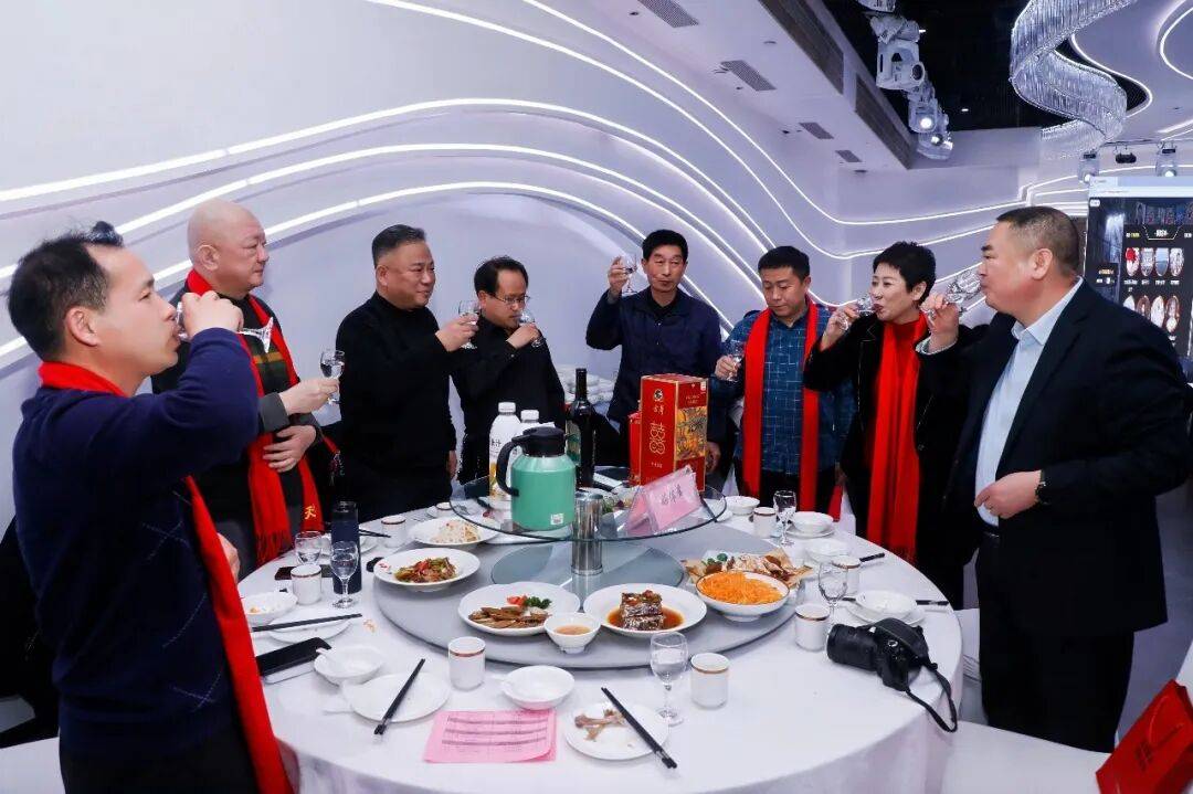 晚宴伊始,马鹰会长、党支部书记陈新建、常务副会长刘茹、河南省金木匠餐饮家具有限公司董事长曹俊龙和驻马店市五彩喜盈门商贸有限公司总经理姬银环共同登台祝酒,将美好期许与新春祝福融入美酒,全体同仁举杯同庆,共祝驻马店市餐饮与住宿行业在新的一年里蒸蒸日上,再创佳绩。
