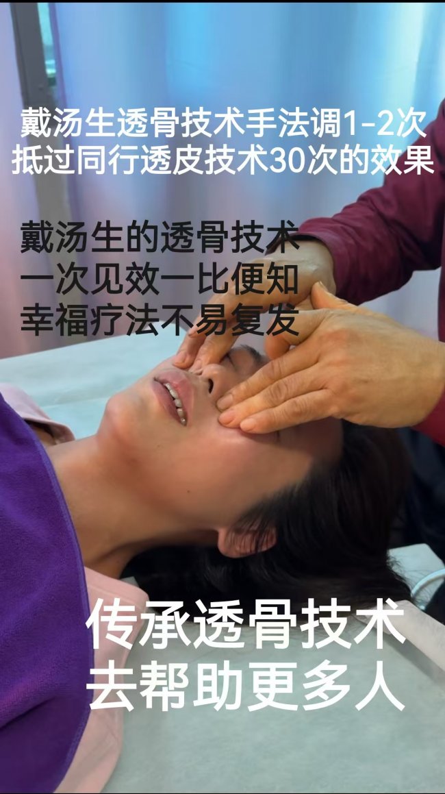戴汤生的透骨神奇透骨技术手法直接透入骨头🦴深沉,能使快速逼出肺🫁经和大肠经的风寒湿热暑燥,一次见效,调好后还不易复发。戴汤生的透骨技术调一次能超过同行透皮技术调10-30次的效果(透皮技术作用在体表)。已入骨严重鼻炎遇上透骨技术手法就好比五行相克方法快速解决问题。