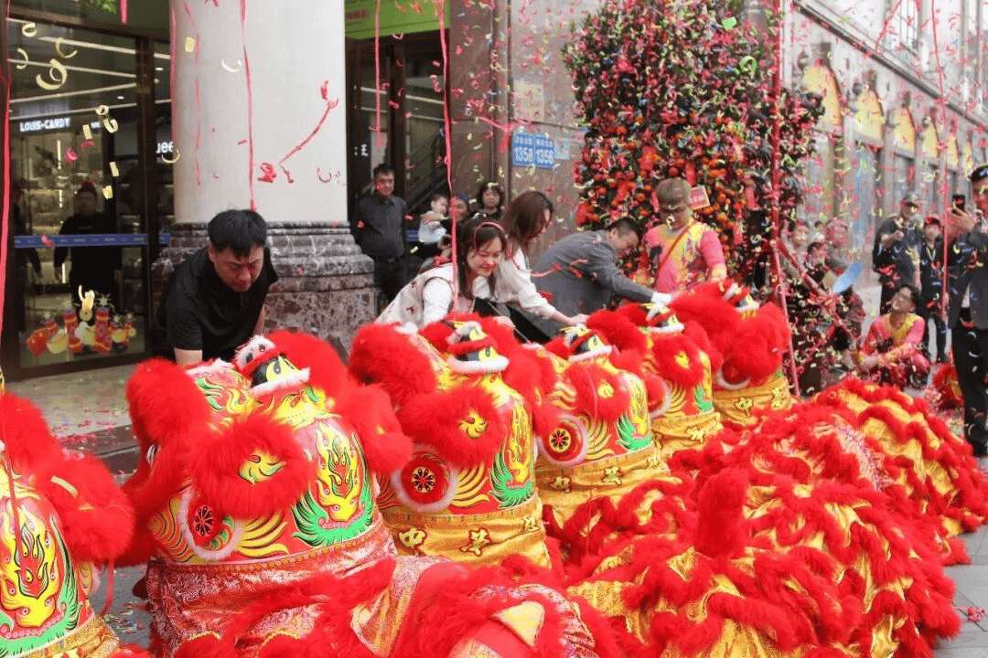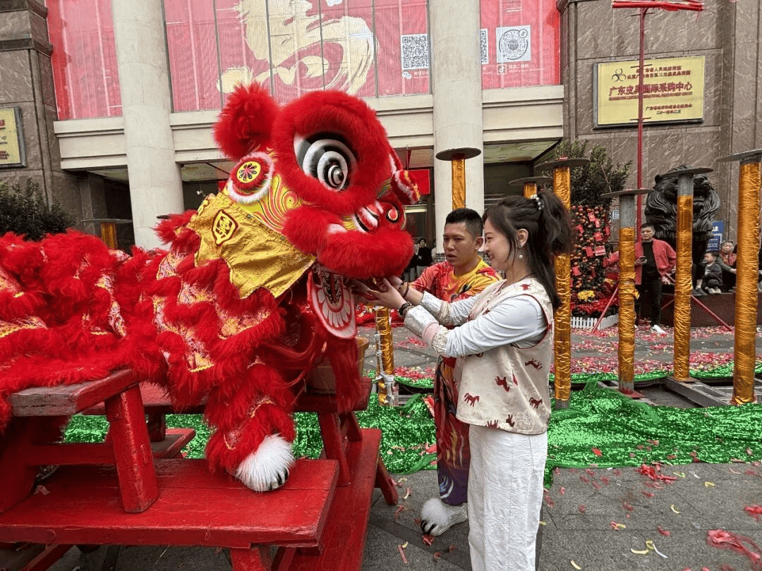 广州白云皮具城举行盛大的传统醒狮开市仪式