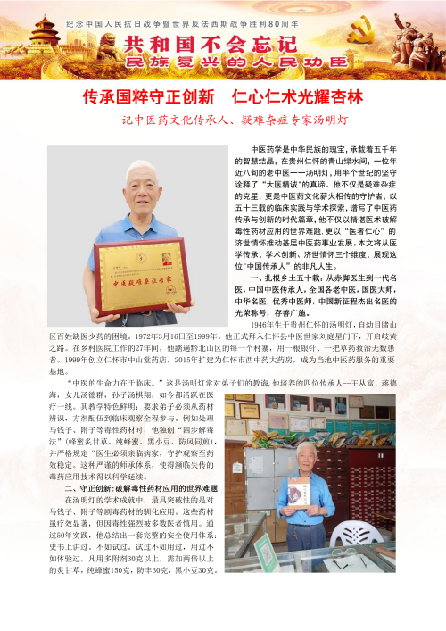 赞仁怀市名老中医汤明灯