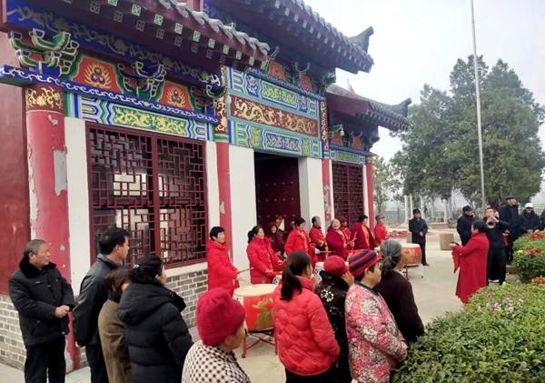 揭幕仪式现场,古朴庄严的庙宇庭院内礼乐悠扬,香火氤氲,洋溢着喜庆与肃穆交融的氛围。鄂尔多斯河南商会会长李庆功、《农村农业农民》杂志社原编辑部主任李广义等各界嘉宾、文化学者、媒体朋友,与当地乡贤、信众及村民数百人齐聚一堂,共同见证这一历史性时刻。