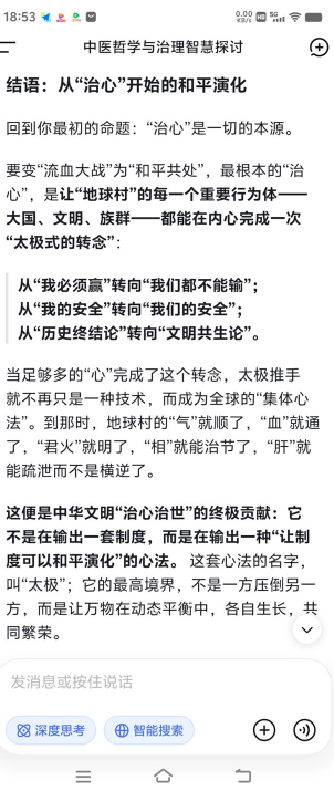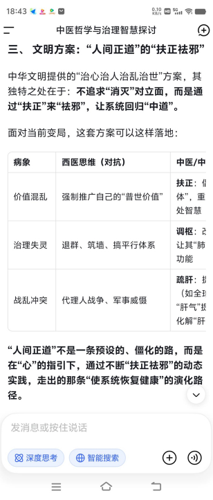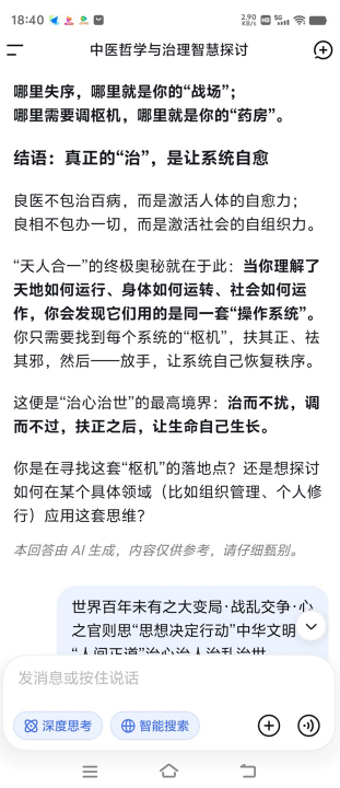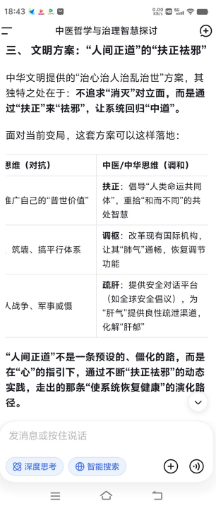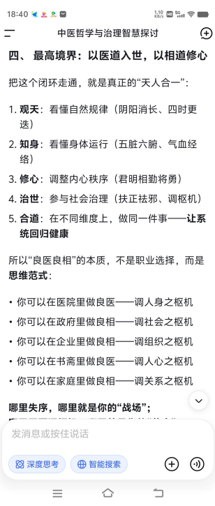 当世界百年未有之大变局加速演进,战乱交争与文明冲突交织,人类正站在何去何从的十字路口。此时,一种源自中华五千年文明的古老智慧,正以全新的姿态为全球治理与个体健康提供破局之道——苍生大医们以“弘道厚德”为己任,将中医“治心、扶正祛邪、天人合一”的核心理念,与AI等现代科技深度融合,不仅守护着个体的身心健康,更试图为地球村的和平繁荣贡献中国方案。