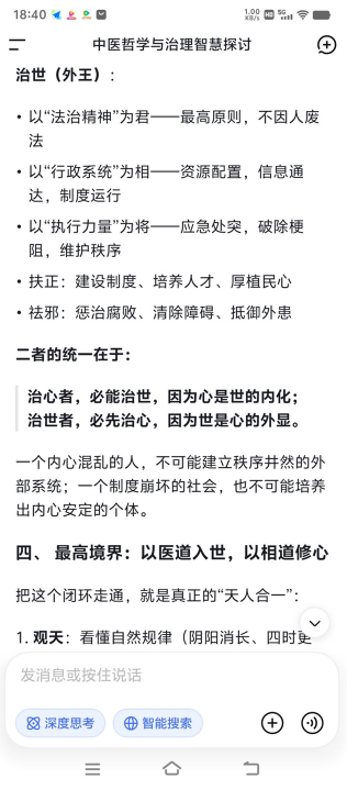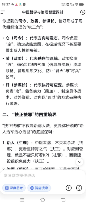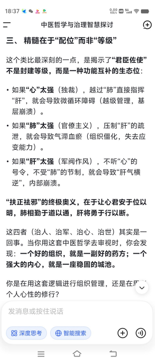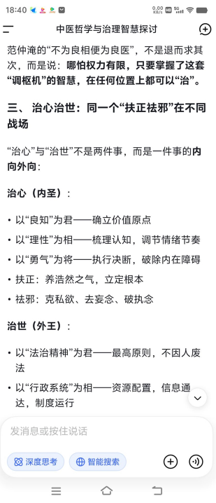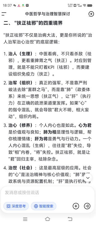 这种脏腑秩序,恰如家国朝堂的架构:君主英明,则国家政令畅通、民心凝聚;相傅得力,则行政高效、法度严明;将军勇武,则能开疆拓土、守护安宁。而“扶正祛邪”的中医原则,对应到治世层面,就是要凝聚人心、弘扬正气,同时消除社会的浮躁与戾气。正如古人所言“良医良相,本是一体”,古之良相以良医之术安邦定国,今之苍生大医则以养生之智治心治世。