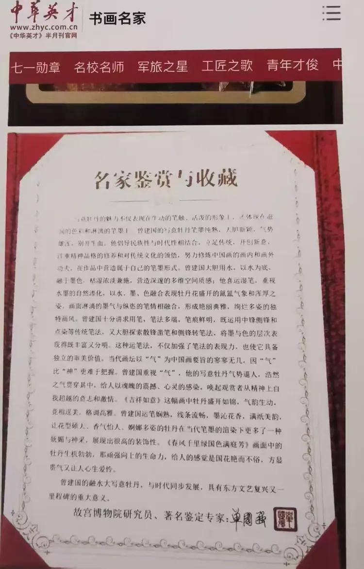曾建国先生以笔为剑、以艺载道,用匠心坚守艺术理想,用佳作诠释时代精神。他笔下的牡丹,是自然之美、艺术之美,更是时代之美、家国之美,必将在中国画坛留下浓墨重彩的印记,成为传世不朽的艺术经典。