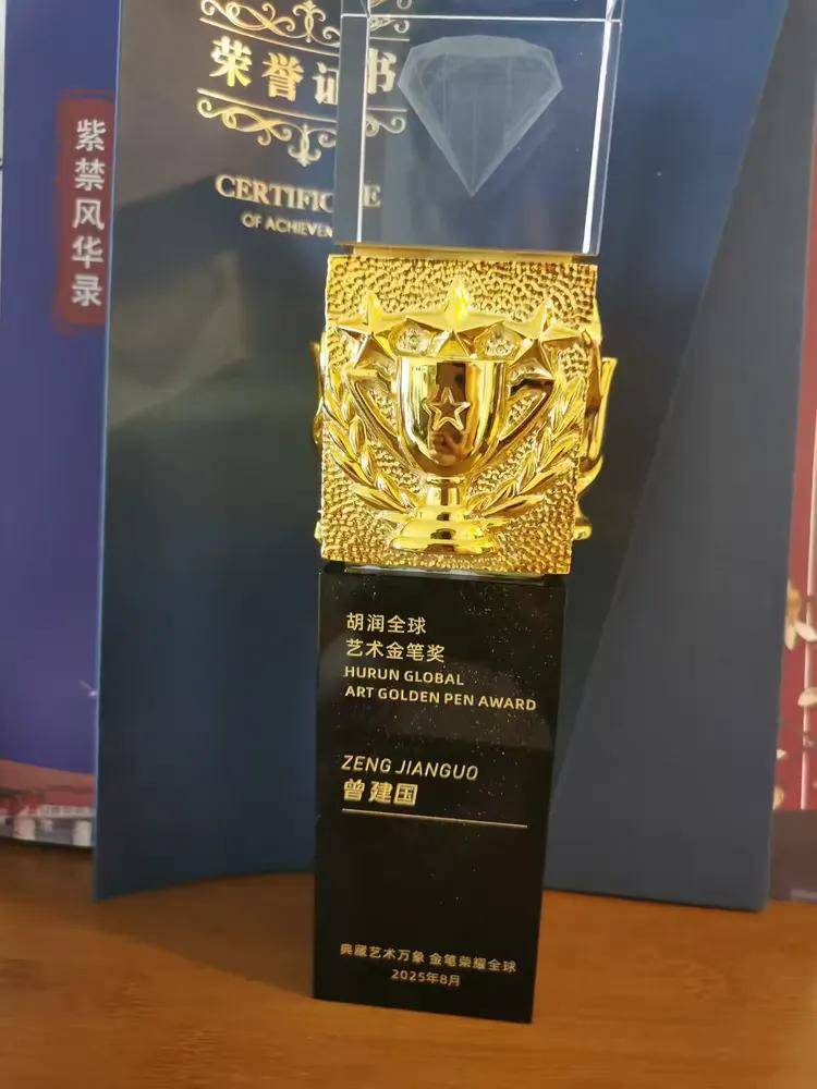 独创融水法大写意牡丹,得到北京故宫博物院研究员单国强、中国美协原副主席王明明、广东省政府文史馆员黎展华,当代著名艺评家尚辉.史峰等30多位老师撰文赏评,《人民周刋(网)》《中华英才》《南方日报》《读者》《中国收藏》《美术》《中国书画报》巜广州美术研究》等报刋发表500多幅作品;近两年,牡丹图多次在北京地铁、国际机场巡展,先后在北京荣宝斋、圆明园和炎黄美术馆参展,作品参加法国卢浮宫第36届国际艺术博览会并获金奖;《明天更美好》等牡丹图,被俄罗斯列宾美院,英国剑桥大学、牛津大学收藏;《四海同春》牡丹入选第33届奥运会法国巴黎国际艺术交流展并获金奖;中央新影中学生频道《时代人物》栏目推介播出;作品入编《致敬故宫百年书画艺术典藏之作》;获胡润全球艺术金笔奖,获福布斯世界文化盛典金奖。中国邮政制发纪念中国人民抗日战争暨世界反法西斯战争胜利80周年纪念册(曾建国专册)。2025年12月26日,《人民日报》网《中国日报》网同日载文专介曾建国文艺成果。