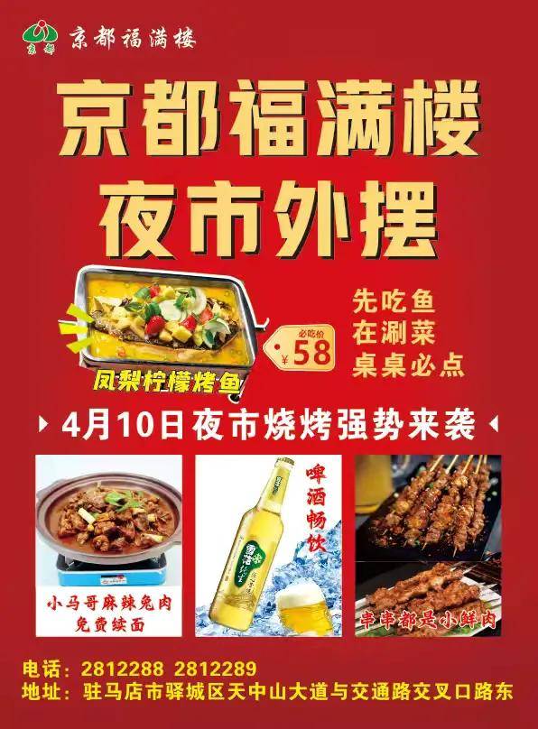 烟火蒸腾福满楼,夜市飘香动客情。4月10日傍晚,位于驻马店市驿城区天中山大道与交通路交叉口路东的京都福满楼,正式开启夜市烧烤模式,并同步推出“啤酒畅饮 清凉一夏”主题活动,为广大食客带来了一场味蕾与氛围的双重盛宴。