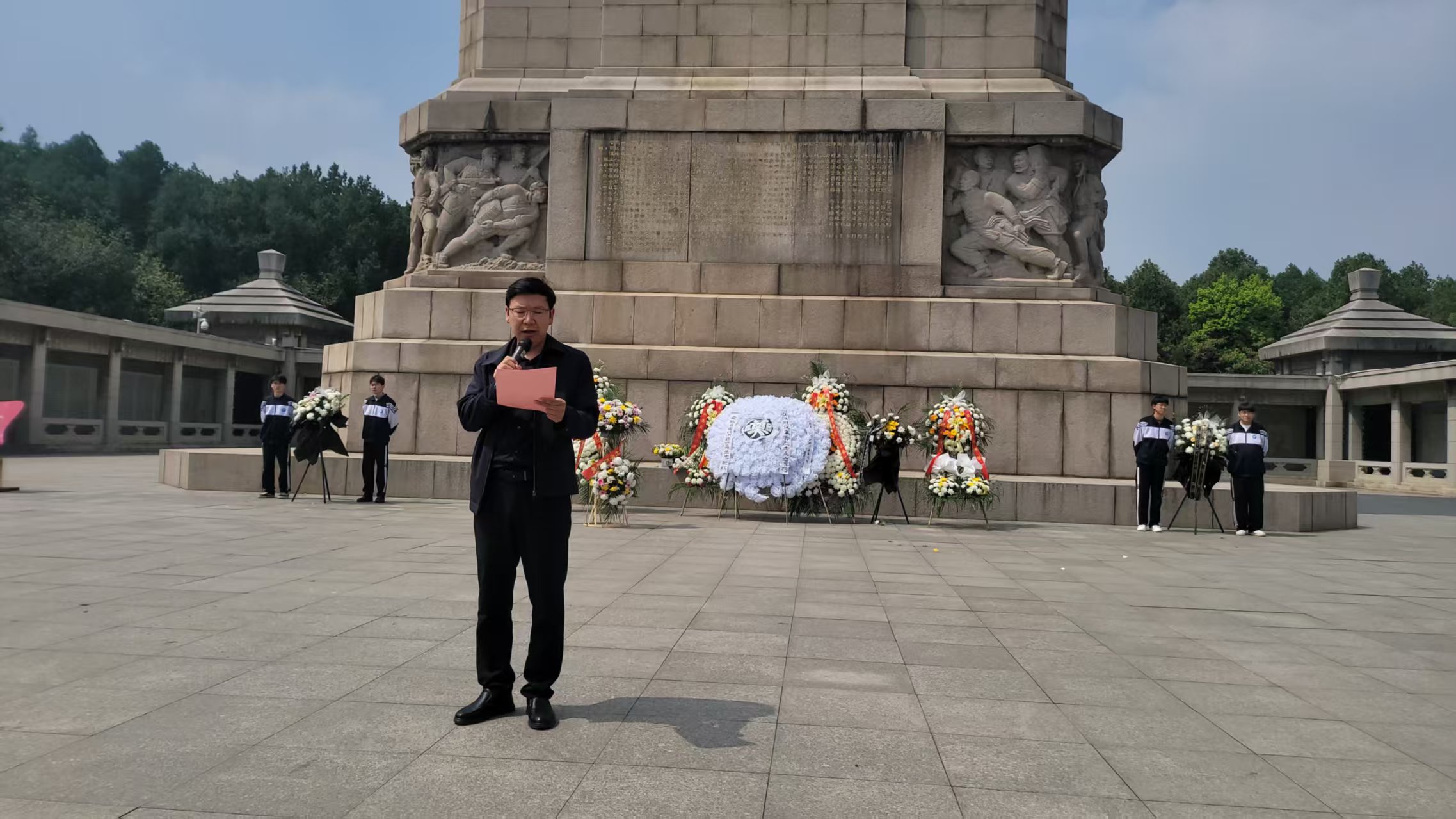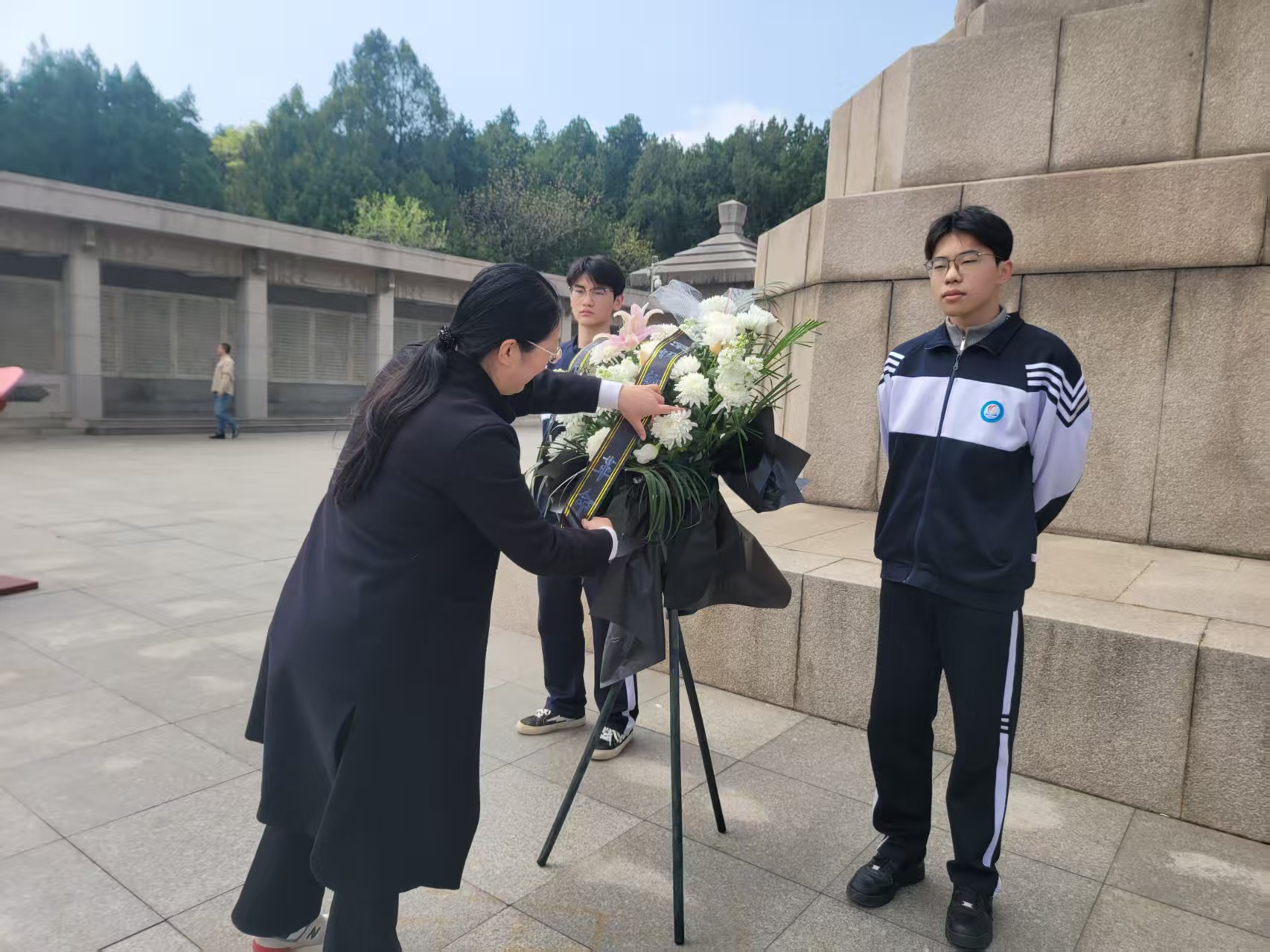 祭扫仪式庄重肃穆,秩序井然。伴随着低沉悠扬的哀乐,全场师生默哀致敬,深切缅怀革命先辈舍生忘死、浴血奋战的英雄壮举。随后,学生代表向烈士纪念塔敬献花篮,老师代表细心整理缎带,以最虔诚的礼仪表达对英烈的崇高敬意与无限追思。全体学子紧握右拳,庄严宣誓,铿锵有力的誓言回荡在陵园上空,立下铭记历史、勤学奋进、强国有我的青春誓言。