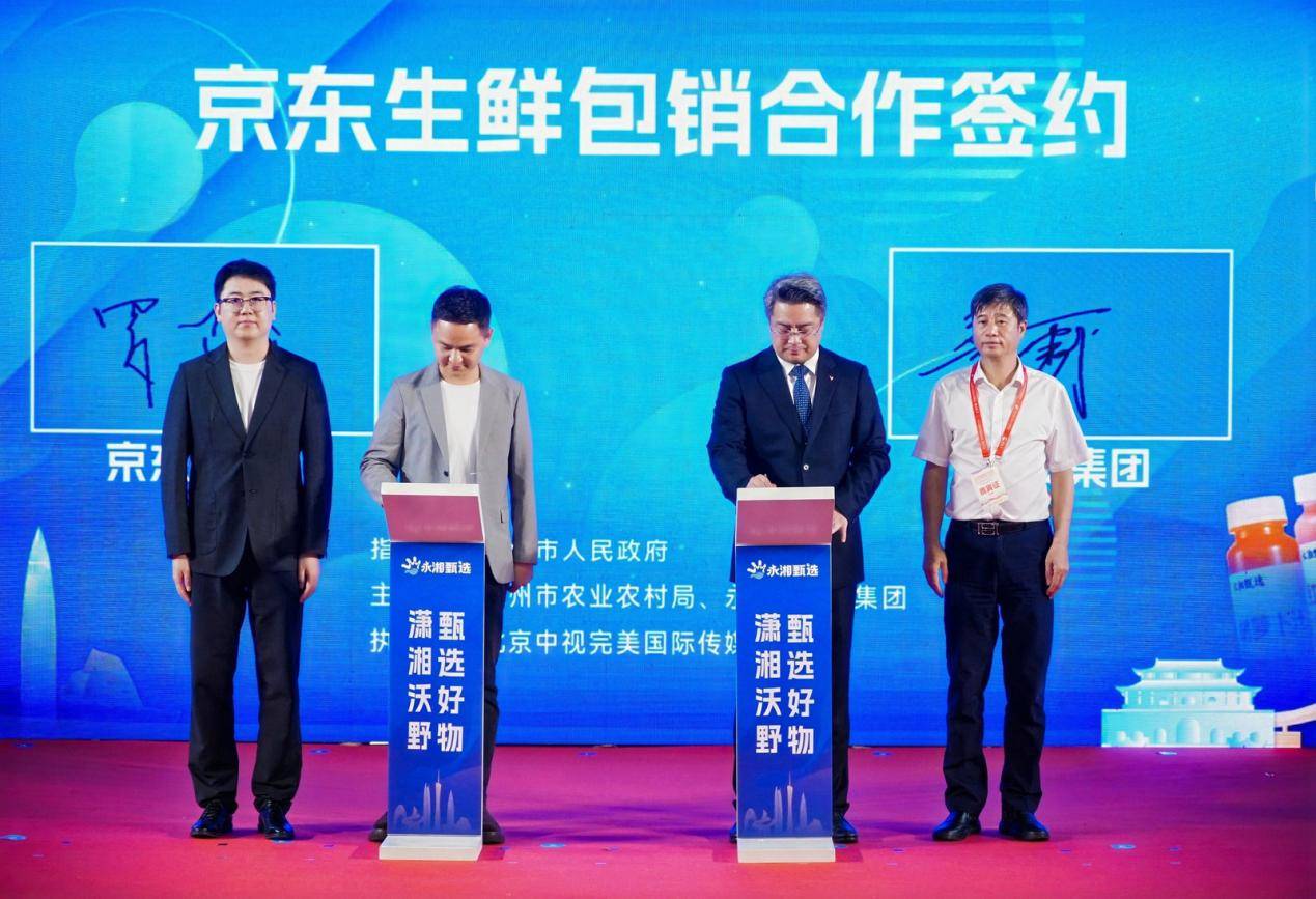 4月11日下午,潇湘沃野·甄选好物——永州市“永湘甄选”产销推介会在广东现代国际展览中心E馆举行。会上,京东生鲜与永州市港发集团签署一亿元包销采购合同,同步启动《永湘甄选》区域公用品牌打造,助力永州优质农产品拓宽全国市场。