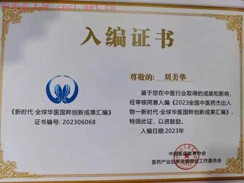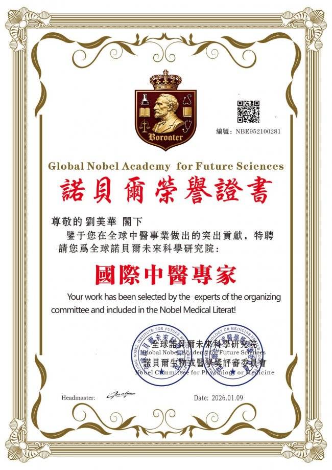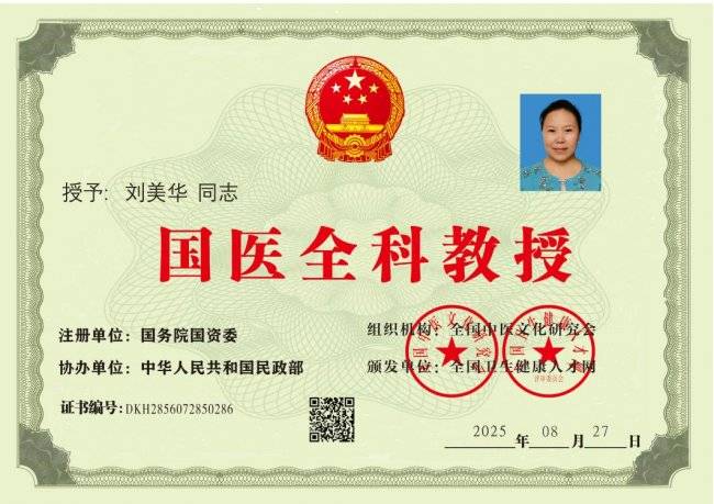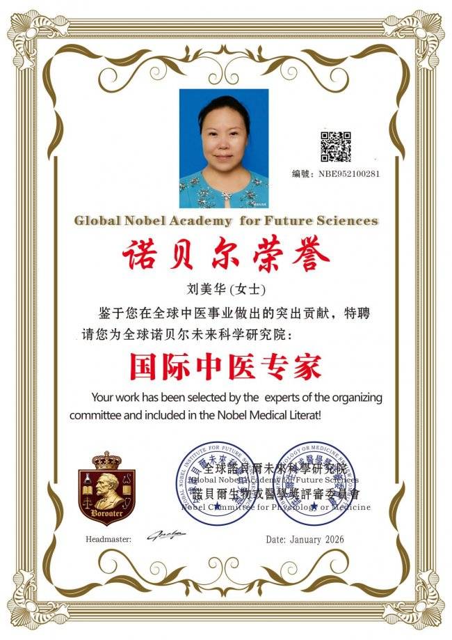 初心如磐,笃行不怠。近二十年间,刘美华始终以严谨谦逊的态度深耕中医药领域,不放过任何学习提升的机会。她潜心研读《黄帝内经》《伤寒杂病论》等经典医籍,汲取传统中医的精髓要义;积极参与各类专业培训与考核,在实践中锤炼诊疗技能。功夫不负有心人,她先后顺利取得“执业中药师”“高级健康管理师”“儿童中医高级调养师”“国际针灸师(A级)”等多项权威资质,更荣获“中医药文化传承大使”“国医名师(传统中医学)”等荣誉称号,凭借扎实的专业功底与丰富的实践经验,受聘为中国中医药信息学会“专家委员会特邀专家”、中国管理科学研究院“客座教授”。这一系列沉甸甸的资质与荣誉,不仅是对她专业能力的认可,更是她践行中医药传承使命的坚实基础。