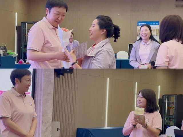 活动临近尾声,当《感恩的心》熟悉的旋律缓缓流淌,现场氛围瞬间被温情包裹。二组组长王绿红代表小组向协会领航人于小丽会长献上寓意“一辈子”的精美杯子,二组秘书长张新同步送上鲜花,以实物寄托与协会风雨同舟、携手共进的坚定信念。于会长被这份突如其来的惊喜深深打动。现场与会姐妹深受感染,会场随即爆发出雷鸣般的掌声。感动与力量在此刻交汇,为本次经营报告会画上了温暖而有力的句号。