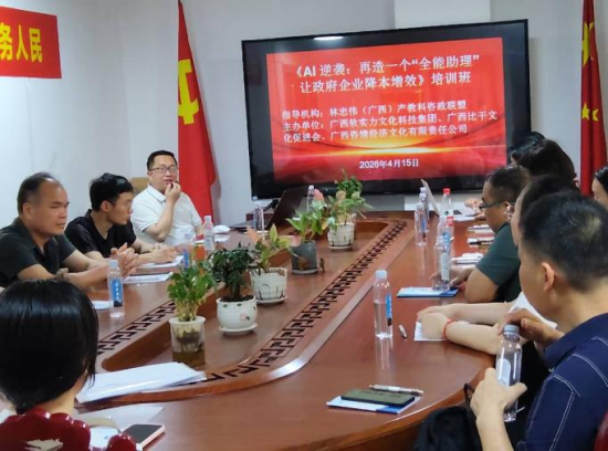 开启AI赋能千行百业让政务提效企业降本——《AI 逆袭:再造一个全能助理让政府企业降本增效》培训献策韦良军 蒋云蕙 蒋秋萍 欧珍凤 林忠伟 2026年4月15日下午,由林忠伟(广西)产教科咨政联盟作为指导...