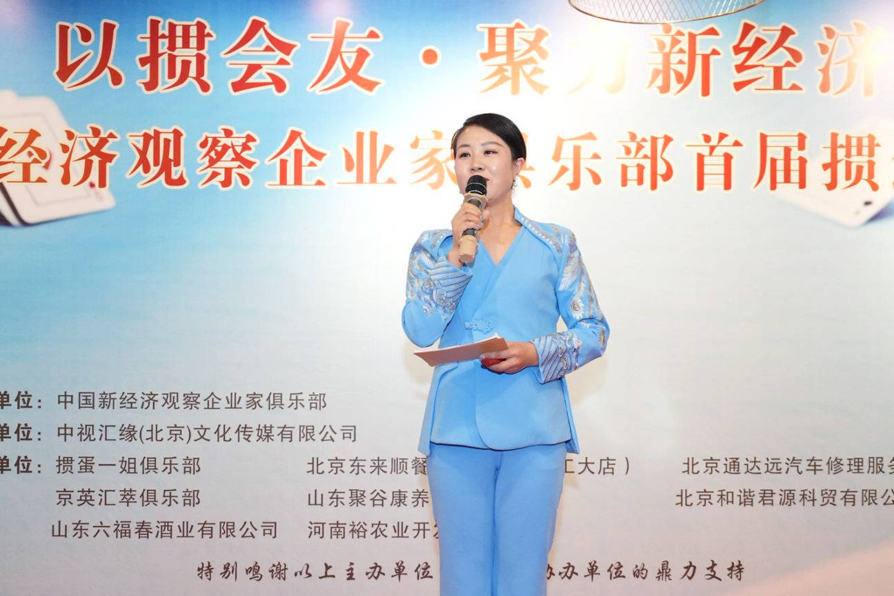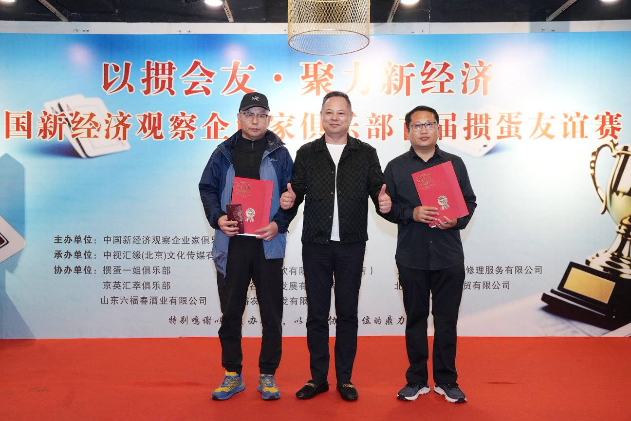 近日,由中国新经济观察企业家俱乐部主办、中视汇缘(北京)文化传媒有限公司承办、掼蛋一姐俱乐部、京英汇萃俱乐部、北京东来顺餐饮有限公(工大店)、北京通达远汽车修理有限公司、山东聚谷康养发展有限公司、山东六福春酒业有限公司、河南裕莊农业开发有限公司、北京和谐君源科贸有限公司、美了个佳美业电商平台等联合协办的“以掼会友·聚力新经济”首届掼蛋友谊赛暨朝阳服务中心授牌仪式,在北京东来顺餐饮有限公司(工大店)成功举办。活动以“掼聚精英、智赢未来”为主题,汇聚行业领军人物、企业家代表及各界嘉宾共120人出席,以牌为媒、以赛联谊,共话合作机遇,共促产业协同。