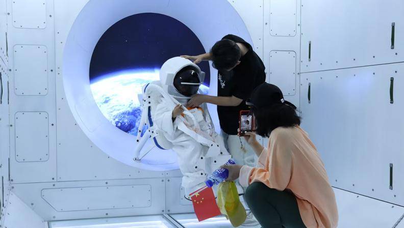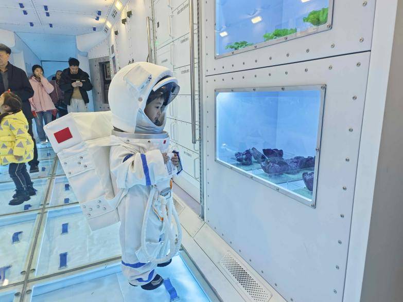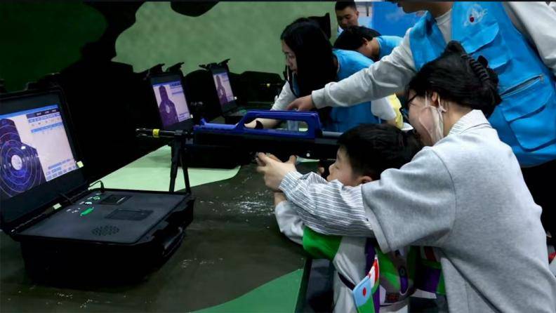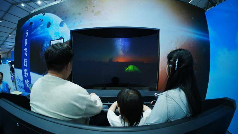 区别于传统“走马观花”式的逛展,本次科博会设置了丰富的沉浸式体验项目,让遛娃变成一场有趣的探索之旅——穿上宇航服在太空主题场景中定格“星际漫游”瞬间;坐上“5D飞行影院”动感座椅,穿越小行星带,感受星际震荡的全感官冲击;端起模拟枪械体验打靶射击;走进真实比例的天和核心舱模型,直观了解航天员在太空的工作与生活场景;进入58米1:1长征二号F火箭,心里种下一颗航天梦的种子;还有月球沙池探索、VR互动等众多趣味体验,让孩子在“玩中学、学中悟”。