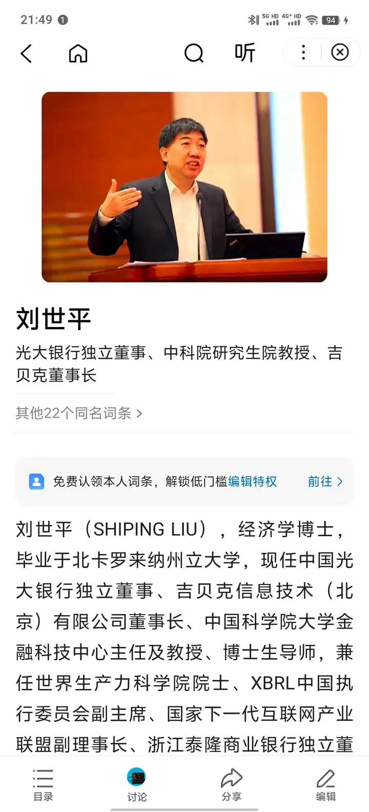 劉世平 美國人工智能科學院通訊院士、世界生產力科學院院士、吉貝克信息技術(北京)有限公司董事長