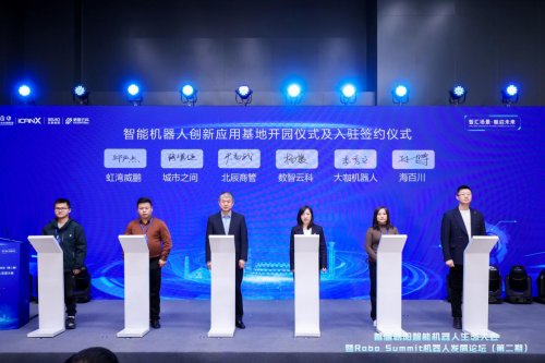 作为“两基地”的另一重要组成部分,智能机器人创新应用基地也取得了重要进展。智能机器人创新应用基地由北辰商管与数智云科联合共建,依托北辰时代大厦打造集产业服务平台、产学研合作平台、孵化器、创新赛事与公共空间于一体的产业集聚区。在中关村朝阳园党工委委员、管委会副主任段飞飞,北辰实业总经理助理,北辰商管党委书记、董事长尹高武见证下,“智能机器人创新应用基地”正式开园。活动现场,北辰商管与5家企业完成意向签约。