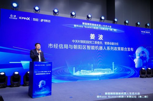 中关村朝阳园党工委委员、管委会副主任姜波系统介绍了北京市经信局与朝阳区联合发布的智能机器人系列支持政策——《北京奥林匹克中心区机器人创新公园规划建设方案(2026-2030年)》、《北京市朝阳区智能机器人产业创新应用三年行动计划(2026-2028年)》及若干支持措施。