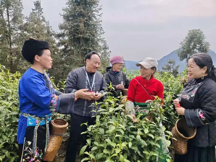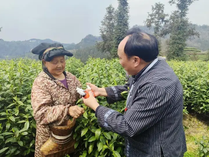 符忠来到茶园免费给茶农发放正骨液药品,用实际行动助茶农增产增收